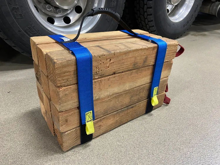 BLUE: The cribbing strap long will hold 10 or 12 pieces of cribbing. Wedges and base plates can also be secured in the bundle.