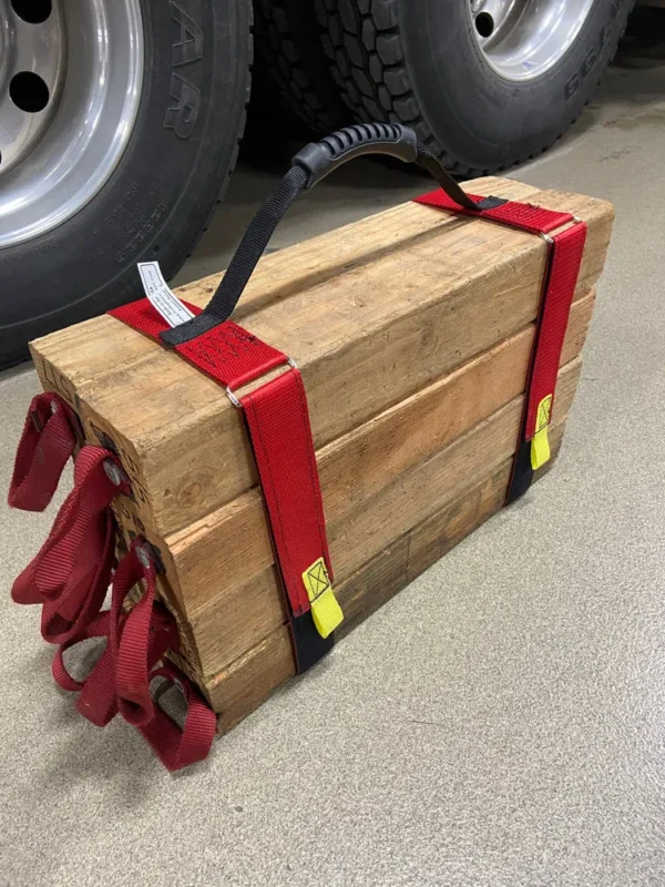 The cribbing strap bundles cribbing together for clean storage in compartments and easy carrying to the scene.