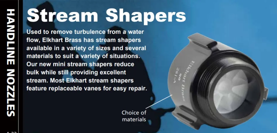 Used to straighten a water flow, Elkhart Brass has stream shapers available in a variety of sizes and several materials to suit many situations. Our new mini stream shapers reduce bulk while still providing excellent stream. All Elkhart stream shapers feature replaceable vanes for easy repair.