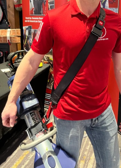 The extrication tool carrying strap was designed to assist firefighters when carrying battery powered extrication tools.