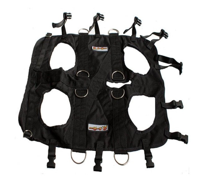 Whether you need to rescue a four-legged critter or take a search and rescue dog with you, you need the Rock ‘N Rescue Dog Lift Harness. Move and hoist dogs or other quadrupeds safely and easily. This full body dog lift harness has been made especially for Search and Rescue K9s. This dog lift harness makes it so you can safely and securely lower or raise your dog into collapsed structures, down cliffs, or even from helicopters. Plus the removable backpack straps make it easy for one person to carry an injured or tired animal. And the adjustable four point strap system (included) gets rid of the need for a bulky, heavy spreader bar when you are lifting or lowering an animal. The price even includes a harness bag. The Rock ‘N Rescue Dog Lift Harness is proudly made in the United States.